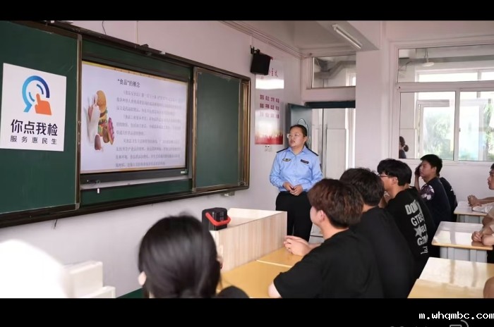 活动现场,市场监督管理局的执法人员走进课堂,图文并茂、深入浅出地向同学们讲解了食品安全基本常识,并现场教授“食品快速检测”方法,“沉浸式”体验食品安全监管工作。