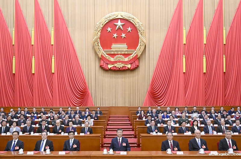 3月11日下午,第十四届全国人民代表大会第三次会议在北京人民大会堂闭幕。党和国家领导人习近平、李强、王沪宁、蔡奇、丁薛祥、李希、韩正等在主席台就座。(新华社记者 李学仁/摄)